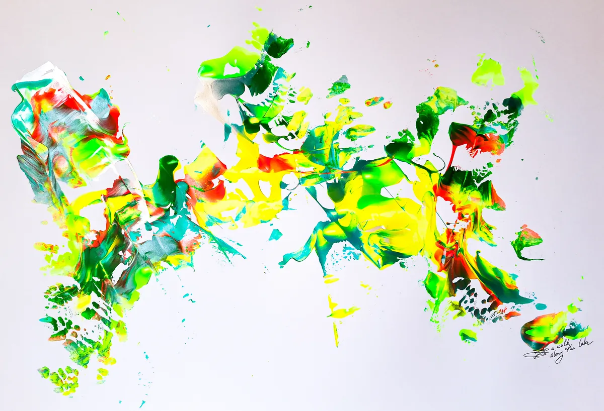 Acrylics on doree paper 220g - unframed - worldwide shipping - copyright barbaraharderlutz After a few rainy days, nature is exploding and drenching the landscape with luscious, juicy green. Walking in the warm sunshine along the lake is so enjoyable amidst all that green!